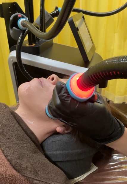 - 顔の施術は、暖かく気持ちいい受け心地です。口の中まで温まるような感じで、皮膚の内部までマイクロ波が届いているのが実感できると思います。
