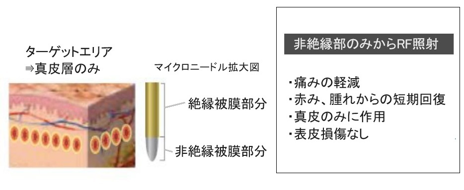 極細針(マイクロニードル)を皮膚へ刺入し、高周波を同時照射します。