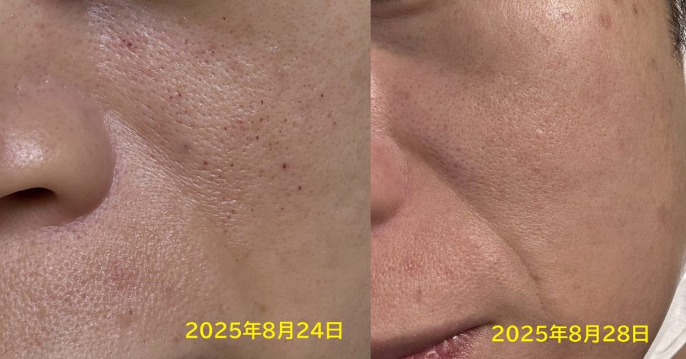 4日後には、皮下出血も消失し、毛穴も縮小します。